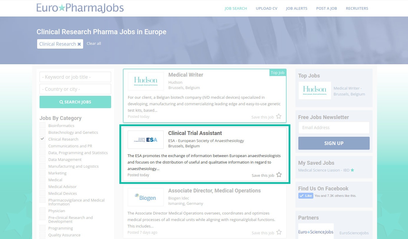 The job is listed several times in the EuroPharmaJobs Newsletter. Once on top and more often in the 'Jobs you may have missed' section at the bottom of every Newsletter.